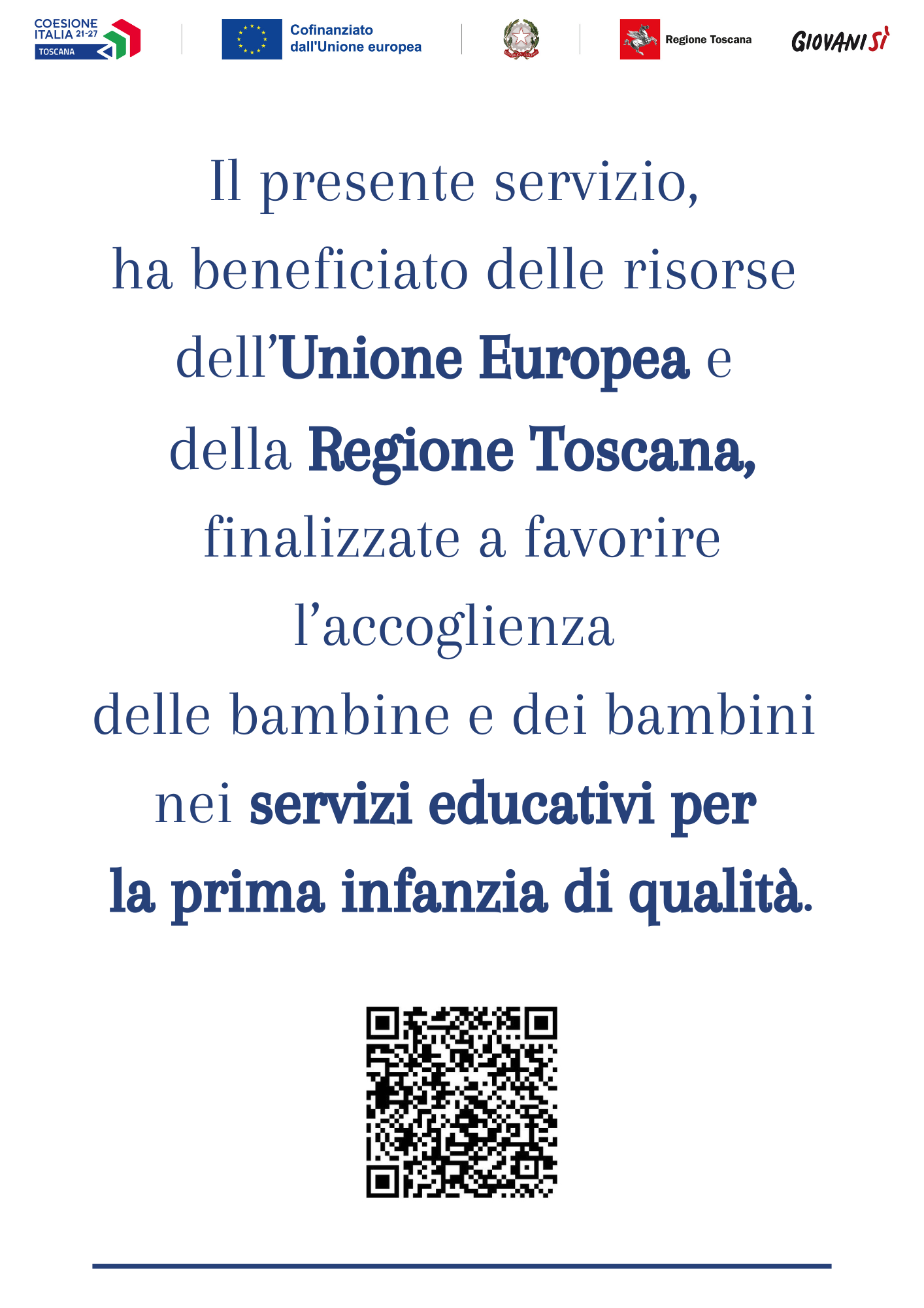 La Regione Toscana, anche per l’a.e. 2024/2025, continua a sostenere l'accoglienza dei bambini e delle bambine nei servizi educativi per la prima infanzia di qualità per favorire la conciliazione dei tempi di vita e di lavoro.