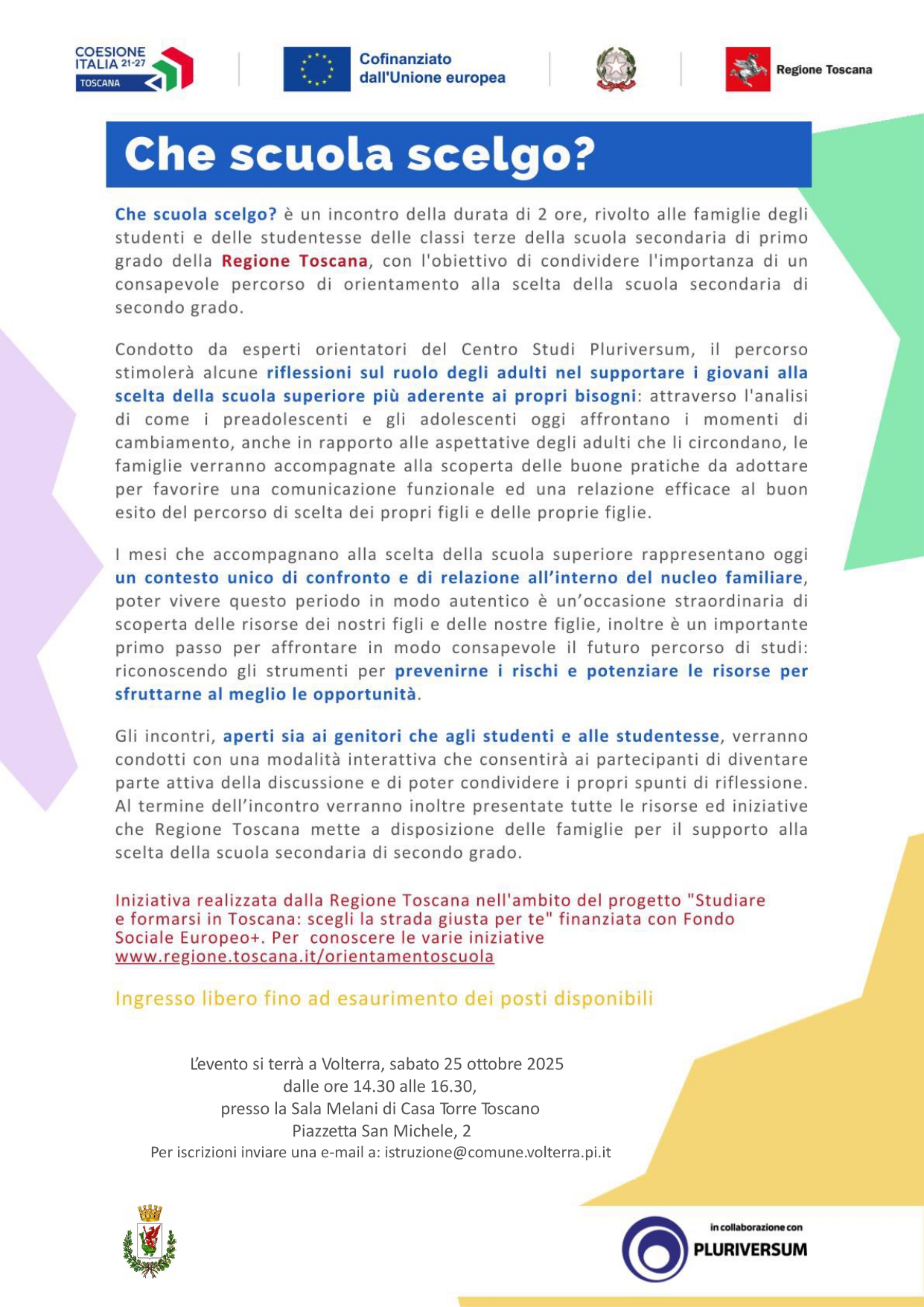 "Che Scuola Scelgo" è un incontro della durata di 2 ore, rivolto alle famiglie degli studenti delle classi terze della Scuola Secondaria di Primo Grado.