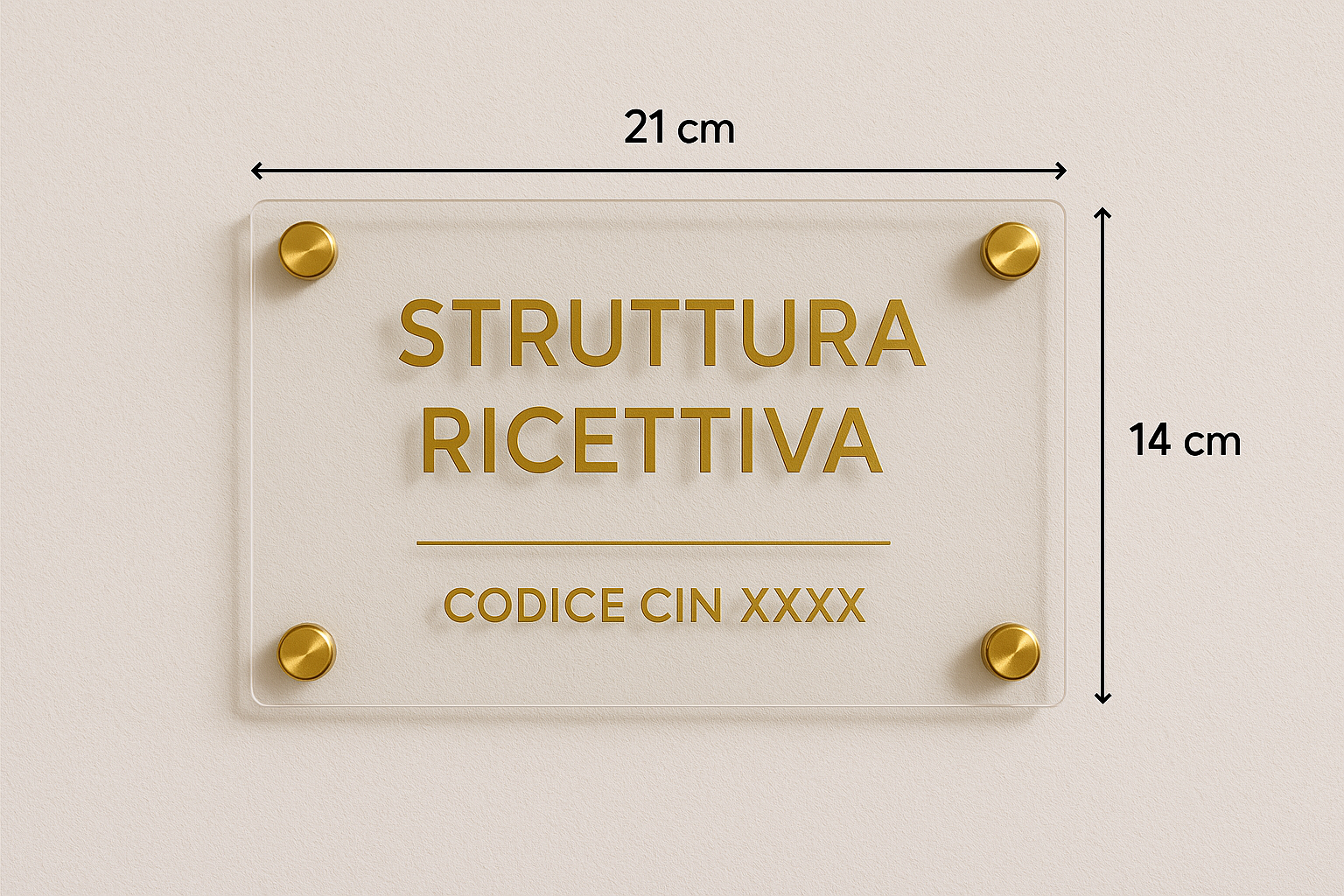 - È obbligatorio esporre all'esterno delle strutture turistico-ricettive alberghiere, extralberghiere, per locazioni a finalità turistiche e locazioni brevi, una targa che riporta il nome della struttura ricettiva e il Codice Identificativo Nazionale (CIN).