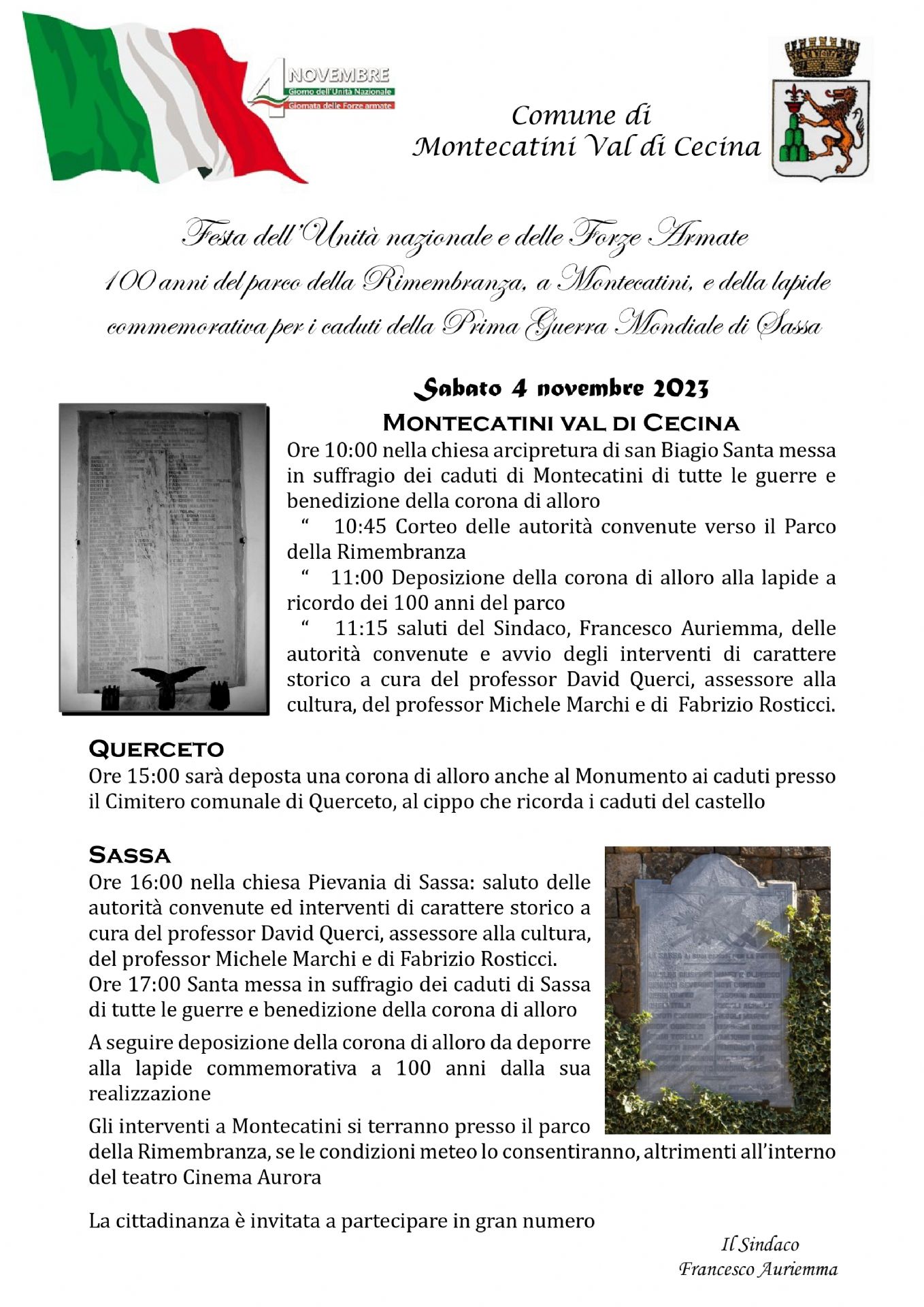 100 anni del parco della Rimembranza, a Montecatini, e della lapide commemorativa per i caduti della Prima Guerra Mondiale di Sassa