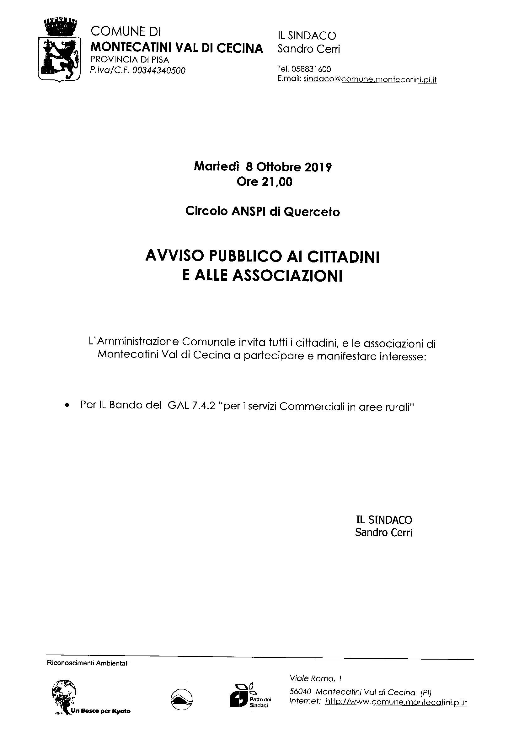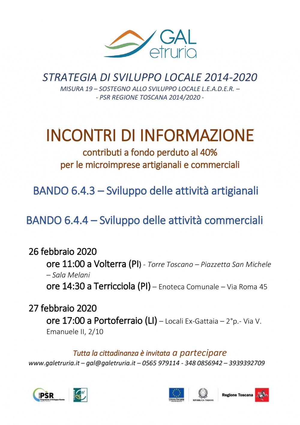 Il presente bando viene emanato per dare attuazione all’operazione denominata “7.4.2 Servizi commerciali in aree rurali” in base all’art. 20 paragrafo 3 del Reg. (UE) n. 1305/2013 ed è stato elaborato in coerenza con: con: le norme unionali, il “Programma di Sviluppo Rurale della Toscana” versione 5.1 approvato con DGRT n. 1381 dell’11 dicembre 2017, la Strategia di Sviluppo Locale (di seguito SSL) del GAL Etruria (di seguito GAL) approvata con DGR 1243 del 5 dicembre 2016 e smi, le Disposizioni comuni per l’attuazione delle misure ad investimento” approvate con Decreto del Direttore ARTEA n. 65 del 15 giugno 2018 e smi (di seguito Disposizioni Comuni) e il Decreto Regione Toscana n. 17547 del 30 novembre 2017 che approva i criteri di selezione predisposti dal GAL Etruria.