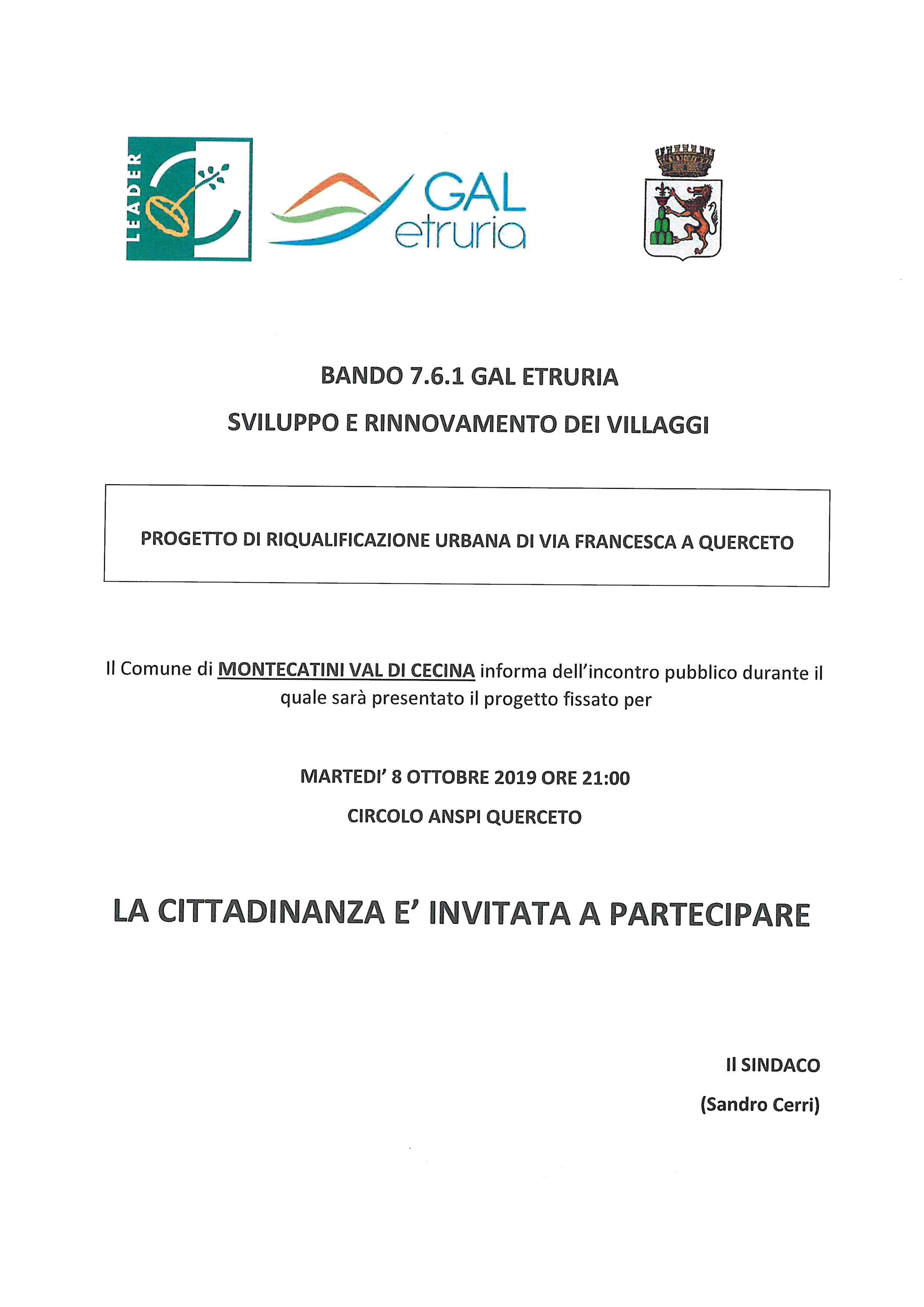 Gal Etruria finanziati per il Comune di Montecatini V.C.